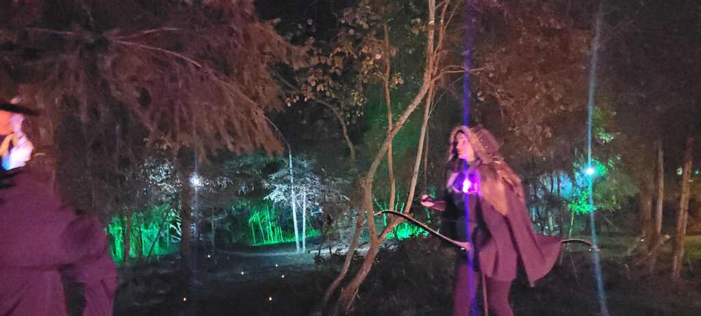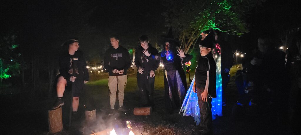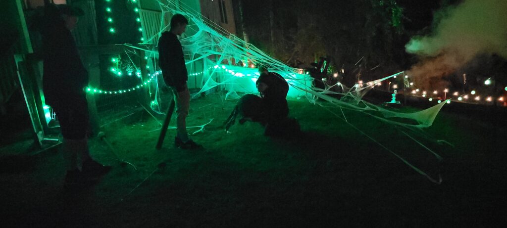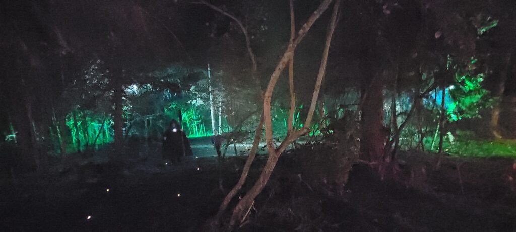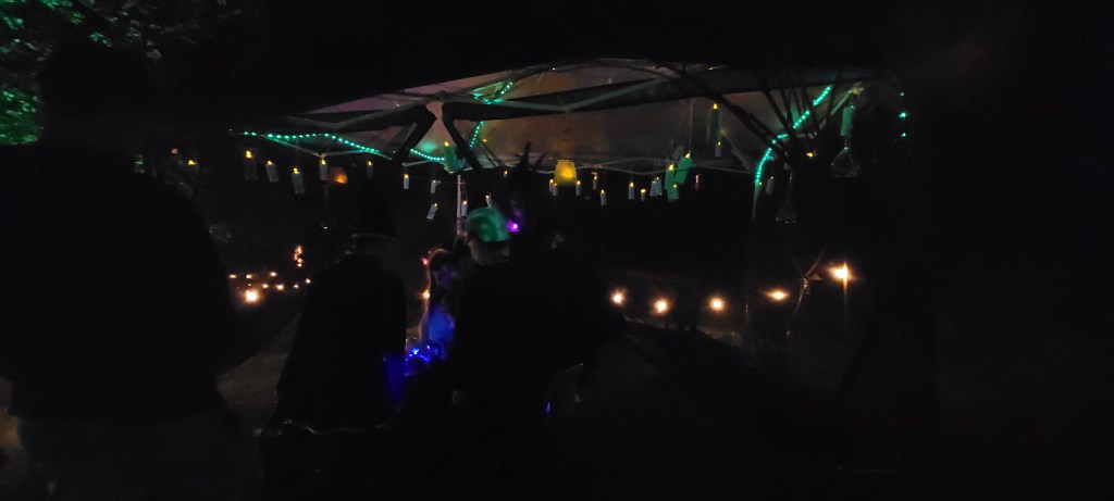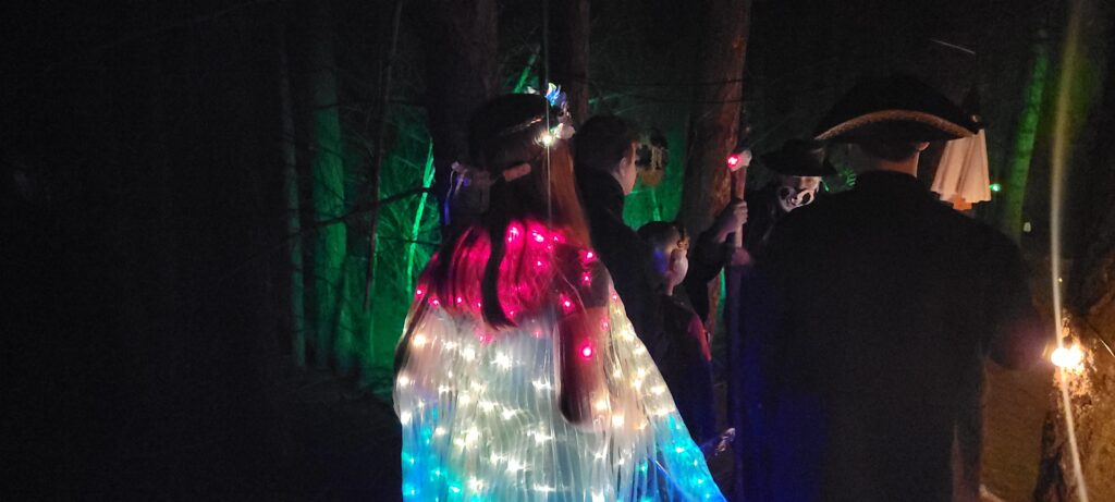 Linleaf the treant is the focal point of this story. It helps to position your story so that you have one prominent, decorated tree that can easily be distinguished as the treant. We strung ours with lights that pulsed green to show the infection spreading.