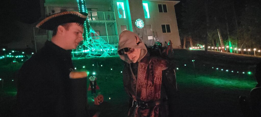The Warlock met them at the front door when they arrived home. They thought they were running into the house to grab some trick or treating bags for an event at the mall… but instead, they were intercepted before they ever reached the front door.